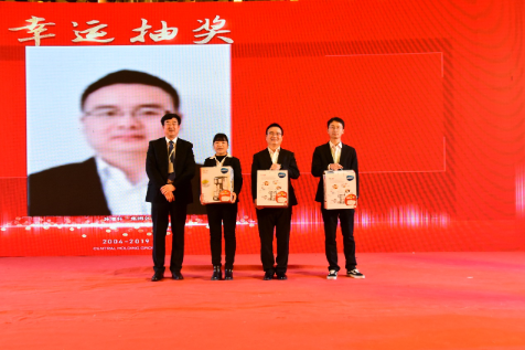晚会的抽奖环节更是让人激动不已!从华为笔记本电脑、华为Mate30手机、华为平板电脑M6到净化器、破壁机等等,款款让人心动。在奖项设置上,包括450名阳光普照奖,100名五等奖、90名四等奖、3名三等奖、2名二等奖、1名一等奖以及1名特等奖。近200款奖品点燃全场激情。此外,受邀前来参加晚宴的合作伙伴们也为现场气氛助添了极大的热情,当场抽取1000元、2000元不等的现金大奖,再度让全场气氛达到高潮。最后,在现场观众的强烈欢呼声中,董事长余竹云增抽12名幸运大奖,分别为10名3000元,2名10000元,为抽奖环节划上了圆满的句号。