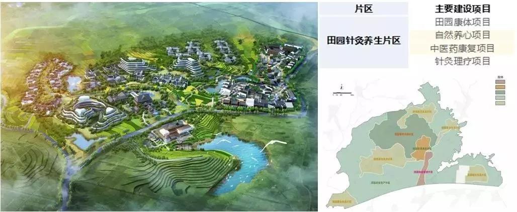 颐养谷位于项目中部,围绕其打造辐射周边区域的高端农旅康养度假目的地的理念,以中医药的复兴和针灸理疗为特色体验,置入酒店、餐饮、会展、农场和会所等多种业态,打造田园康体、自然养心、中医药康复、针灸理疗四大重点建设项目。