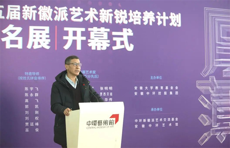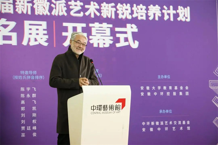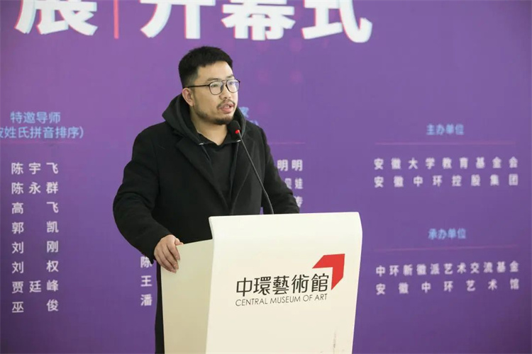 中环艺术馆执行馆长、展览策展人齐廷杰首先感谢大家能够拨冗亲临中环艺术馆,参加“厚积薄发——第五届新徽派艺术新锐培养计划提名展”的开幕式。他提到,国内有很多针对青年艺术家的展览活动,比如北京青年艺术100,比如北京CYAP青年艺术家推广计划、比如上海新星星艺术节,广州大学生艺术博览会。很开心安徽合肥也有致力于推动青年艺术家艺术发展的艺术活动,有幸参与其中,见证了新徽派艺术新锐培养计划自身的成长,他认为青年年艺术家的成长是与各类艺术机构一同成长的。
